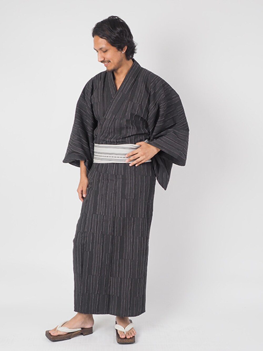 kimonoあんのんの浴衣「特選シンプル柄・男性用お仕立て上がり浴衣4点セット」を使ったコーディネート