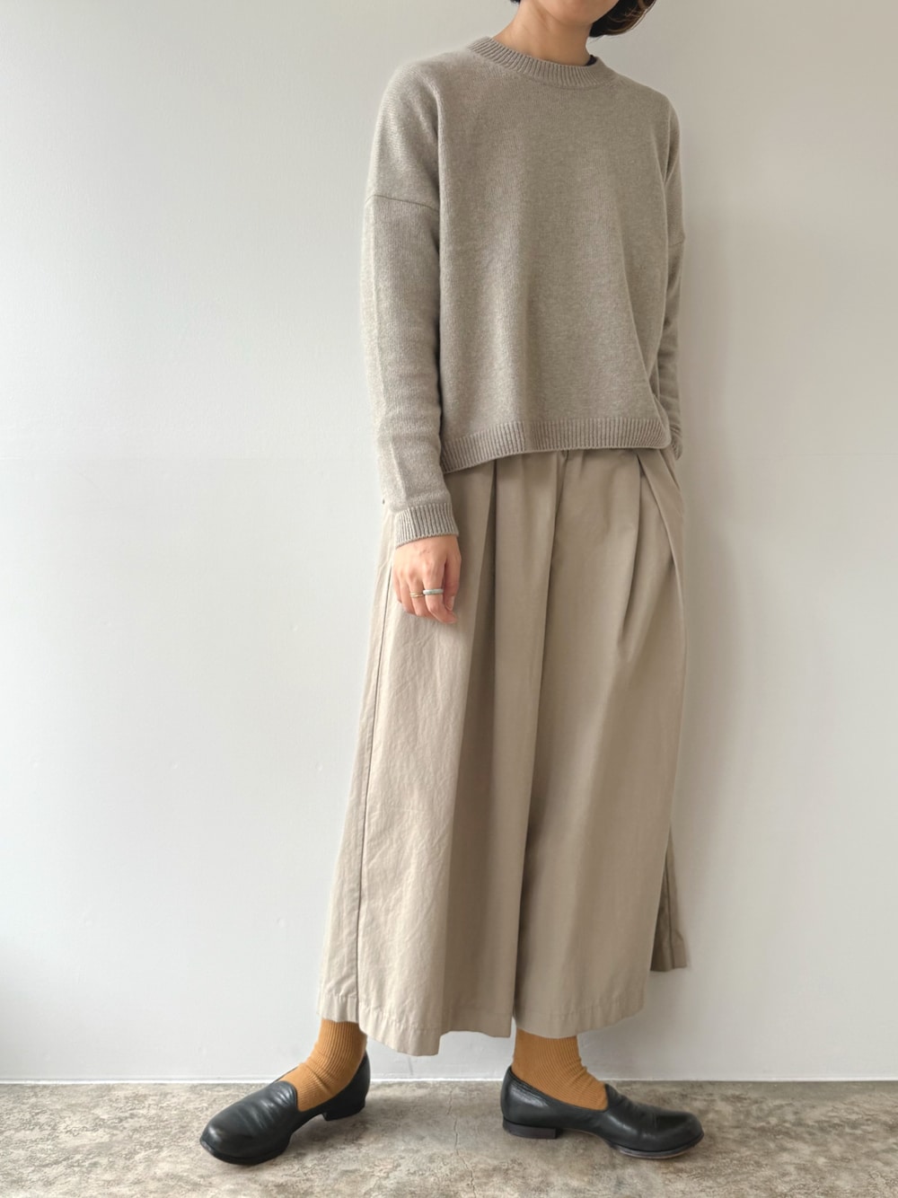 リラックススタイルに 気持ちよくて軽いニットは冬の定番アイテム。