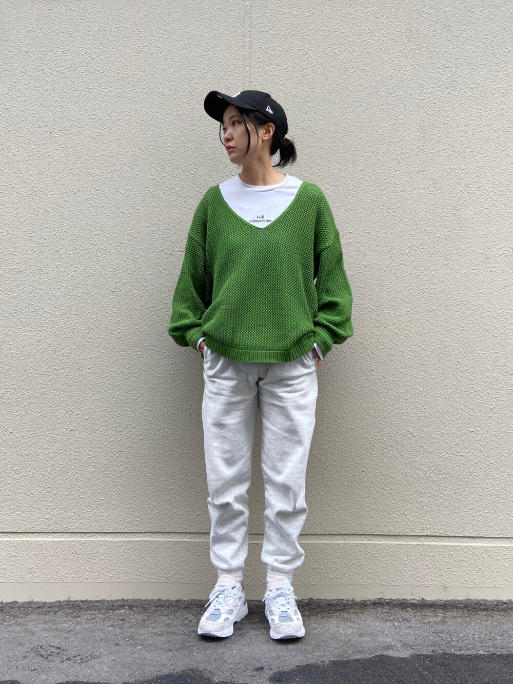 いつもいいねやお気に入りありがとうございます🙇♀ @teeemoeさんのコーデが可愛くて、手持ちの服で真似してみました。 いつもこのコーデのニットには白が黒を着てたのですが、グリーンもかわいい、、💚 新しい発見で、ローテーション1つ増えました。