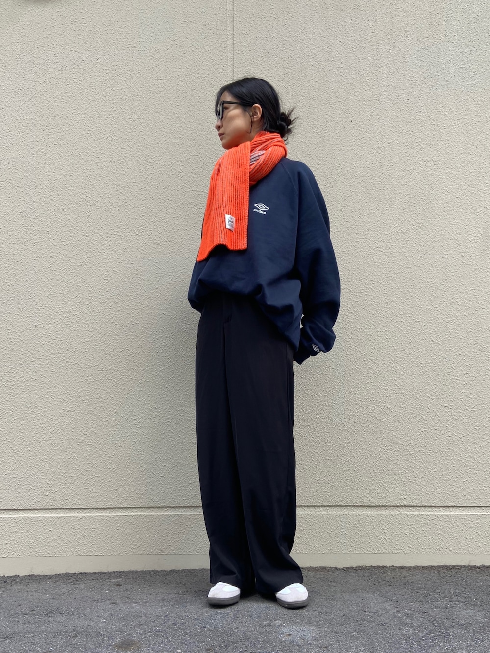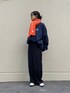 いつもいいねやお気に入りありがとうございます🙇♀ 日中、アウターだと暑かった日。 スウェットは裏起毛であったかいです。 マフラーで差し色🍊🧣