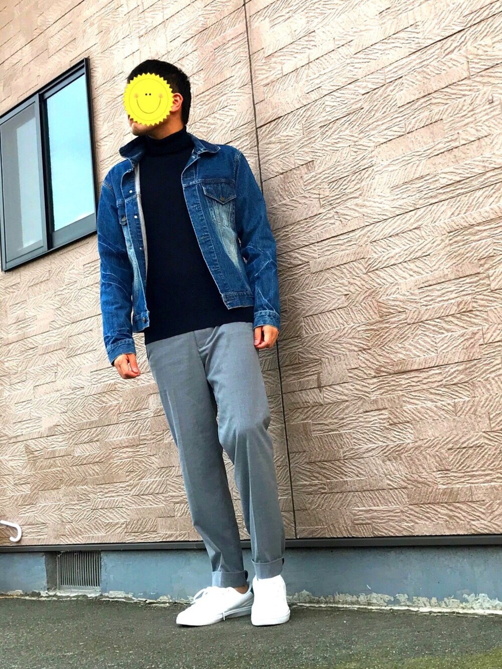 デニムジャケットコーデ デニムジャケットとスラックスを合わせました ではまた(^。^)