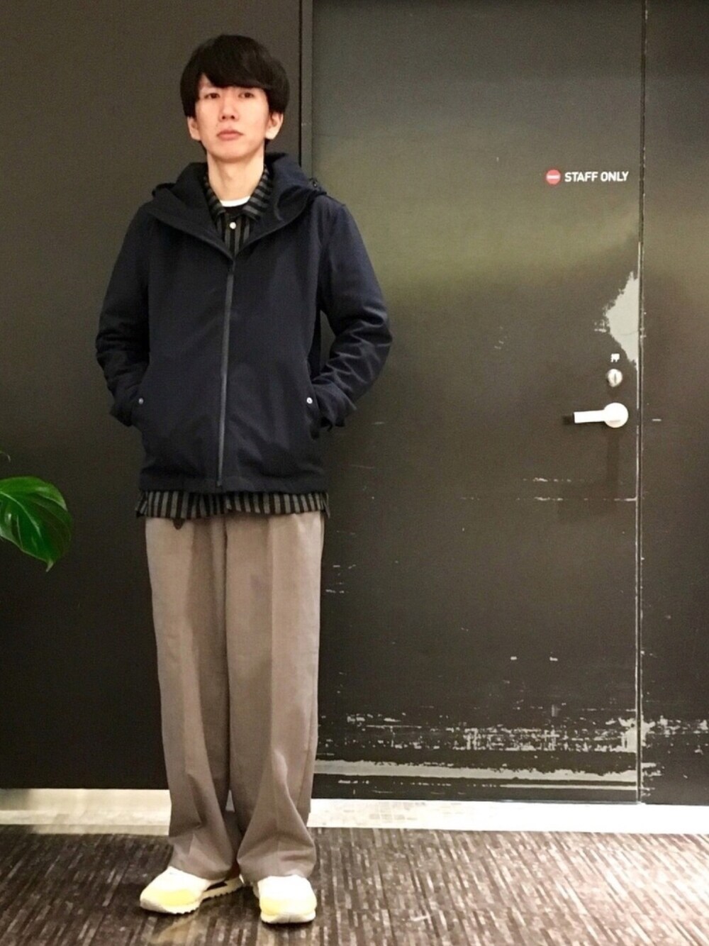 今回羽織っているこのブルゾン、3層構造になっていてシルエットはすっきりですが保温性は抜群です!! 今の時期にはアウターとして、真冬はインナーダウン的な感覚で使えます🙆🏻♂️🙆🏻♂️ ゆるめのスタイリングにメリハリをー( ´ ▽ ` )ノ
