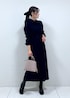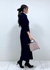 ネイビーワンピースの大人綺麗めコーデ! 重たい印象になりがちなネイビースタイルに キラキラと華やかなニットブルゾンを合わせて 華やかさと明るさをプラス! 大人の綺麗めレディコーデにしてみました!