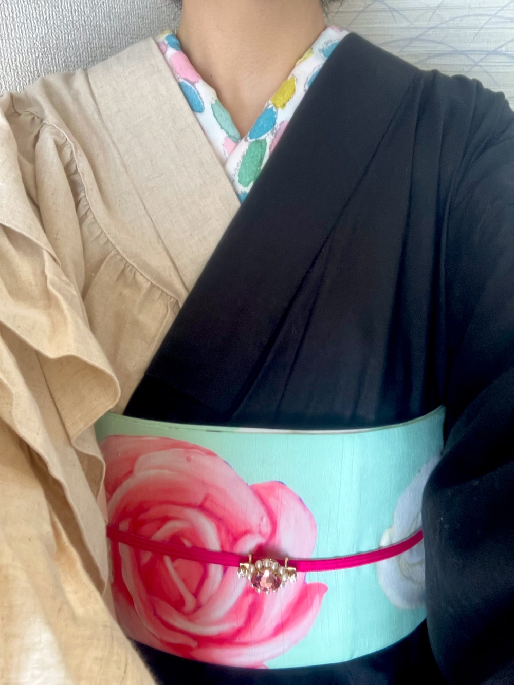 ここ数日でやっと暖かくなりましたね。 つい先日の桜を見に行った時の、大好きなさく研究所のフリル着物のコーディネート。 半衿は大好きなミナペルホネンの手拭いを半衿にして、顔周りを明るくしました。 帯は大好きなハイカロリィオトメのホイップワンちゃんの半幅帯。 帯に描かれているピンクの薔薇の色に合わせた、帯締めと帯留め。 アイテム一つ一つはかなり甘めですが、さく研究所の着物は黒と麻そのものの生成色のバイカラーで、黒の面積が多いので、意外にもオトナも着やすいのが凄く良いのです。 実際、私よりもお姉様な女性たちが素敵な着姿をSNSにupなさっています。 その方たちみたいに、歳を重ねていけるようになれると良いなぁと思います。