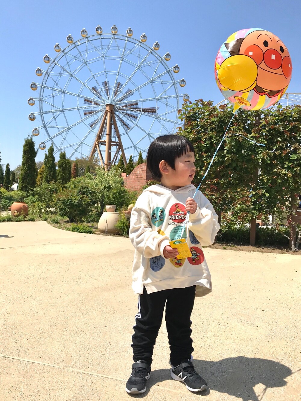 東武動物公園にお出かけ🦁🎡 ミッキーのプリントがレトロで可愛いパーカーが主役⭐︎ ラインパンツがストレッチ効いて動きやすくて◎