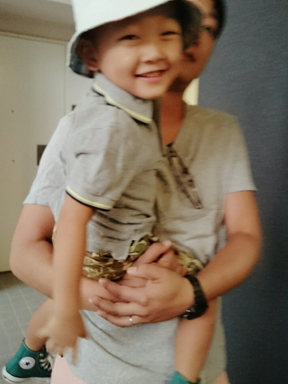 金曜日、車検の申込みしに行く前にぱしゃりこ📷✨ 車屋さんに間に合うように急いで着替えたとーちゃんは長男くんと色とかぶり😂 さて、今日もとーちゃんお仕事やし、 何しようか???