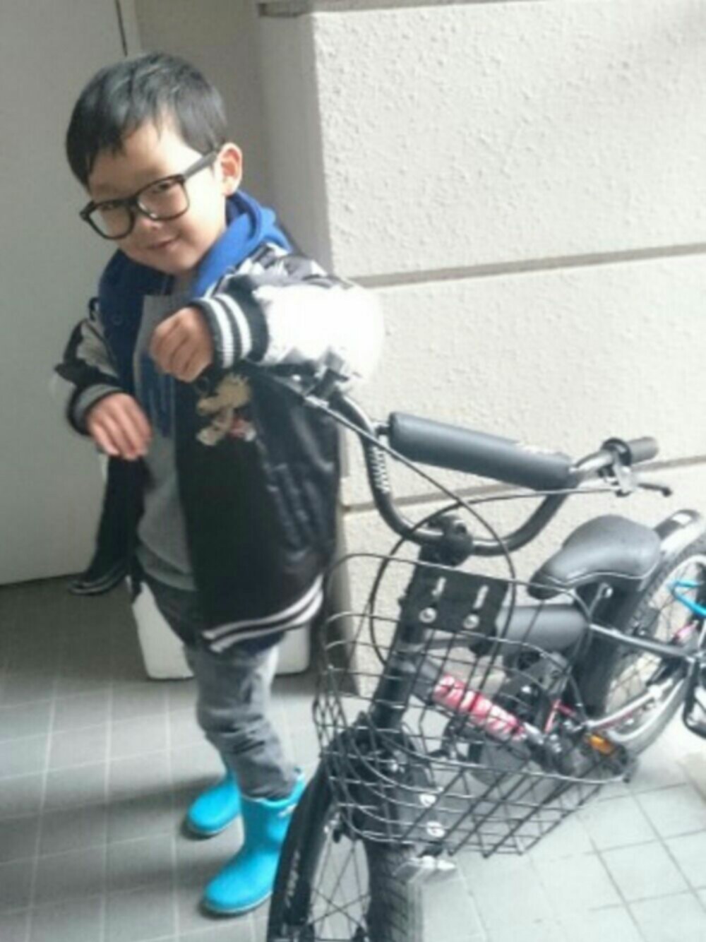 自転車… 毎日見ては『かっこいいなぁ』と長男。 夏ぐらいにはコマなし乗れたらいいね。 ってことで自転車と撮ってあげようか? と言ったらこのポーズ笑