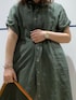 シャツワンピースは軽い羽織にしました‼︎ 丈の長さが程よいのでボトムINもしやすく一枚でも着用しやすいです‼︎ ドットプリントは甘くならずナチュラルなリネン素材なのでリラックスしたコーディネートに‼︎ サンダルを合わせる事で大人仕様に‼︎