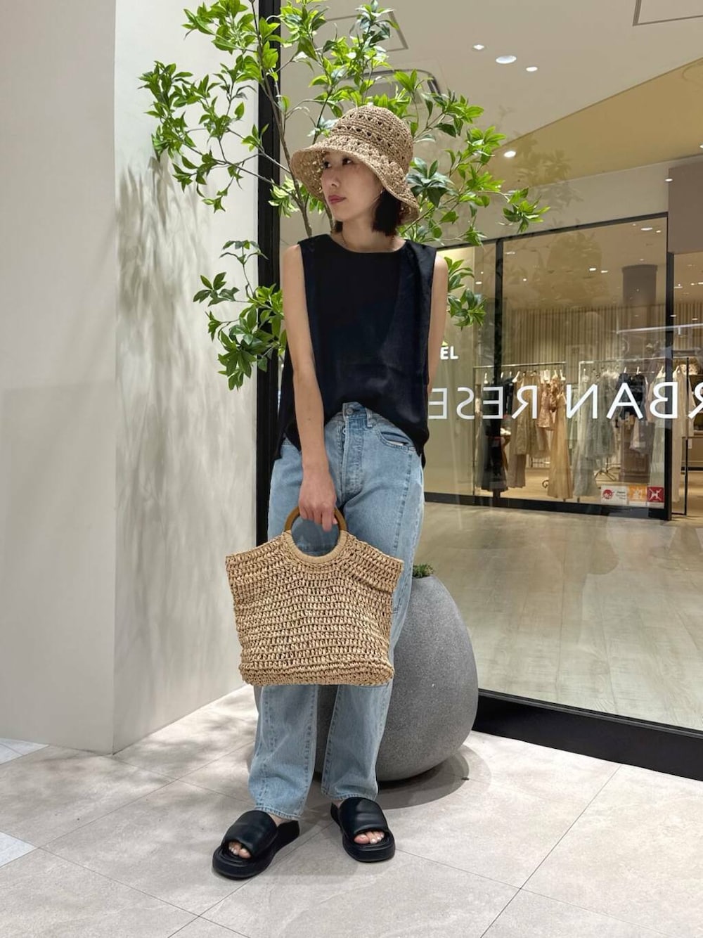 YUKI ♪ (warehouse 三井アウトレットパークマリンピア神戸店)のトートバッグ「ウッドハンドルペーパーバッグ」を使ったコーディネート