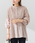 うしろはギャザーになってて とっても可愛いです。 甘めなブラウスですが、 落ち着いた色味で無理なく着れます。 丈が長めだからスキニーと合わせても安心(^^) 薄手のコットン素材だから涼しくて、今すぐから使えるアイテムです。