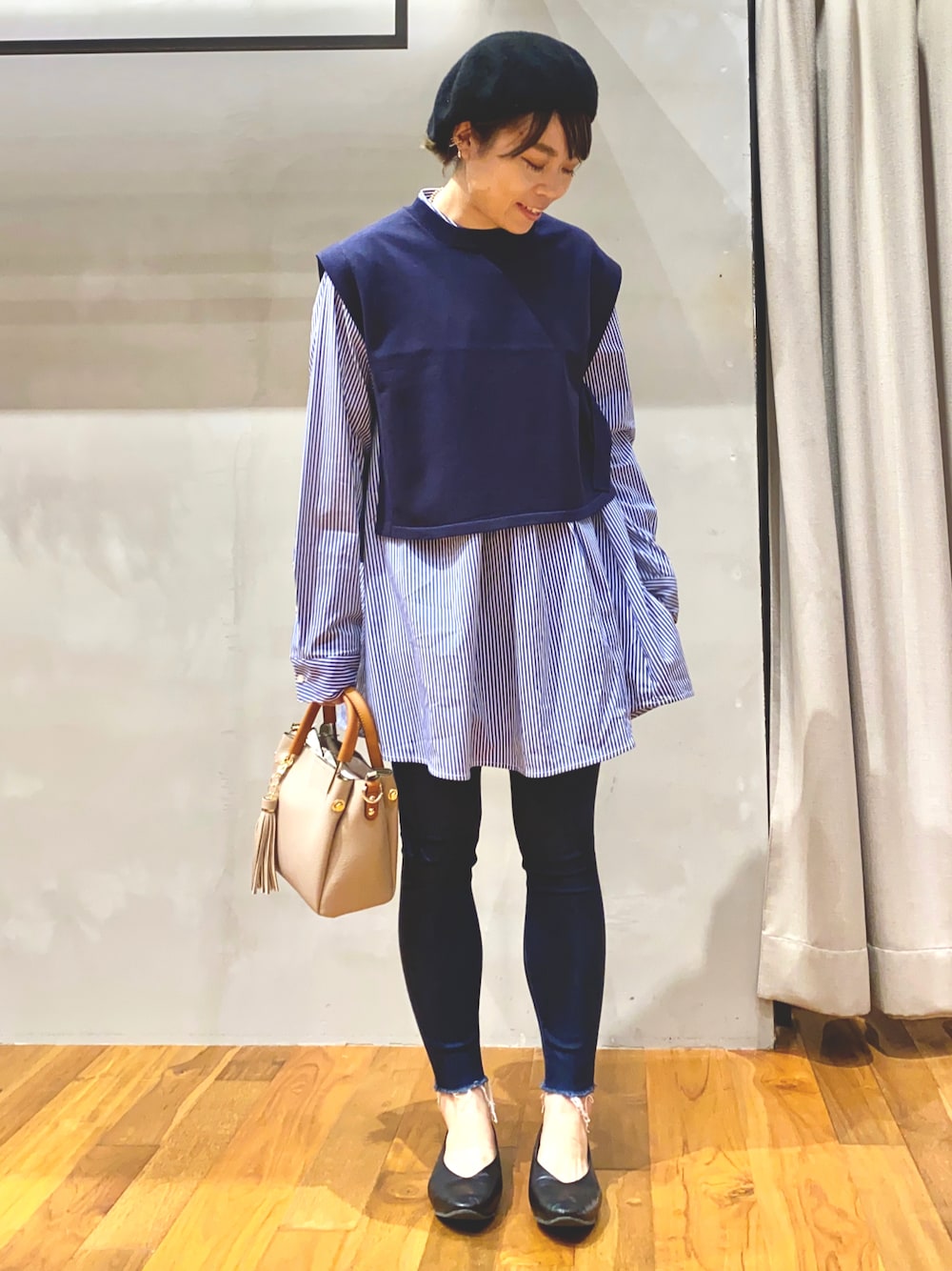 お鶴のシャツ/ブラウス「ニットベストフレアシャツレイヤーセット」を使ったコーディネート
