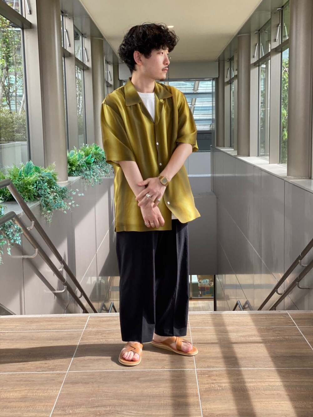 insta:ur_oguma COSEI "グラデーションプリントS/Sシャツ" . 大きすぎず、小さすぎずのサイズ感で、着心地が最高です。 イエローにダークストライプが、絶妙な配色で、物足りなさを解消。 夏シンプルになりがちなコーディネートに、 丁度いいですね。 .
