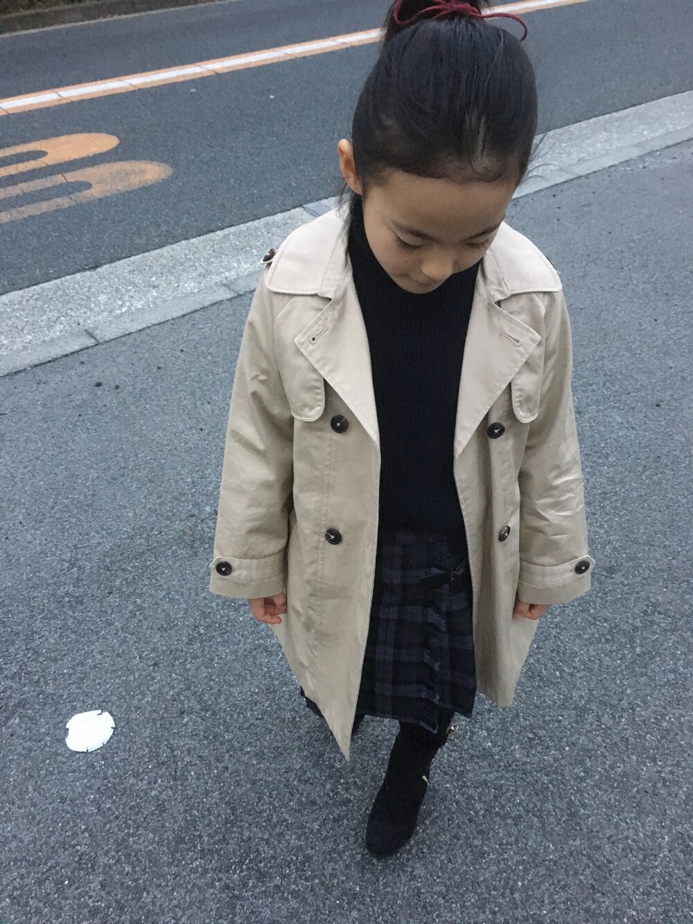 ピアノのレッスンの帰り。 大人みたいなブーツが欲しいとのことで、こないだアウトレットで買いました。 で、それに合わせて大人っぽいコーディネート。着替えたらテンションが激上がり💦 一昨年ザラで値下がりしていて、大きめだったけど買ったトレンチが今年やっとピッタリかな。 ここまでオシャレして、出かけたのは近所だけ😂