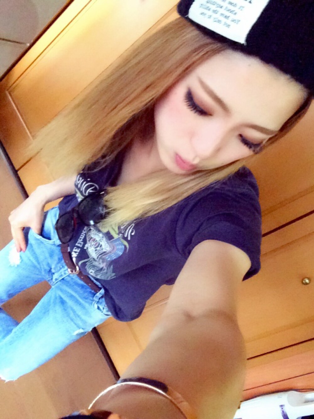 今日わ THE♡ラフ!(笑) 寝不足すぎて今日の学校わ 目イッてるやろなー笑 がんばるよー!♡♩