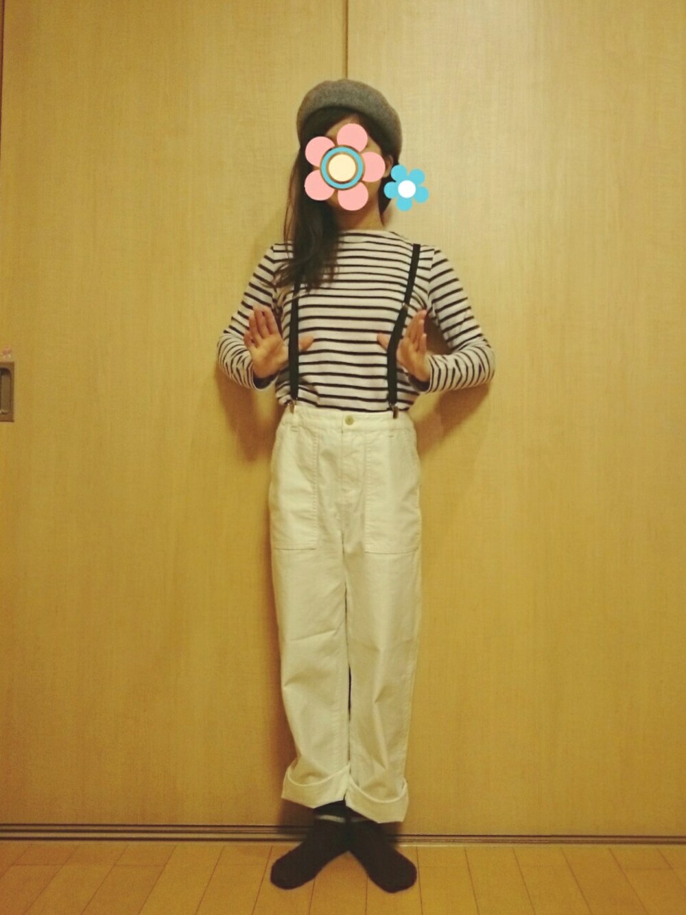 やっと買えた白ズボン 早く着たかったので一人ファッションショー ボブに切ろうか迷い中…