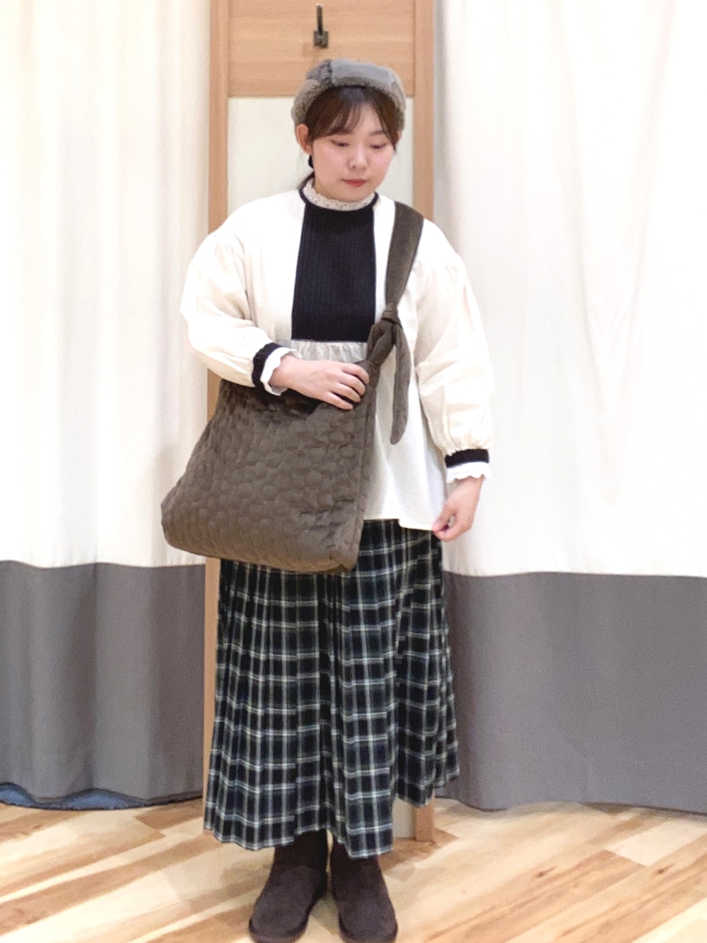 miuのハンチング/ベレー帽「パッチワークベレー」を使ったコーディネート