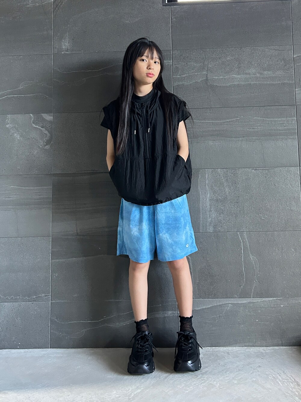 uranのパーカー「【KIDS】シアーナイロン2WAYアノラックパーカー」を使ったコーディネート