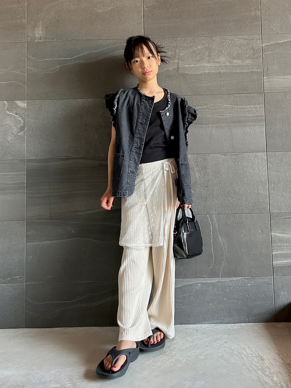 uranのベスト「【KIDS】【WEB限定】フリルデニムベスト」を使ったコーディネート