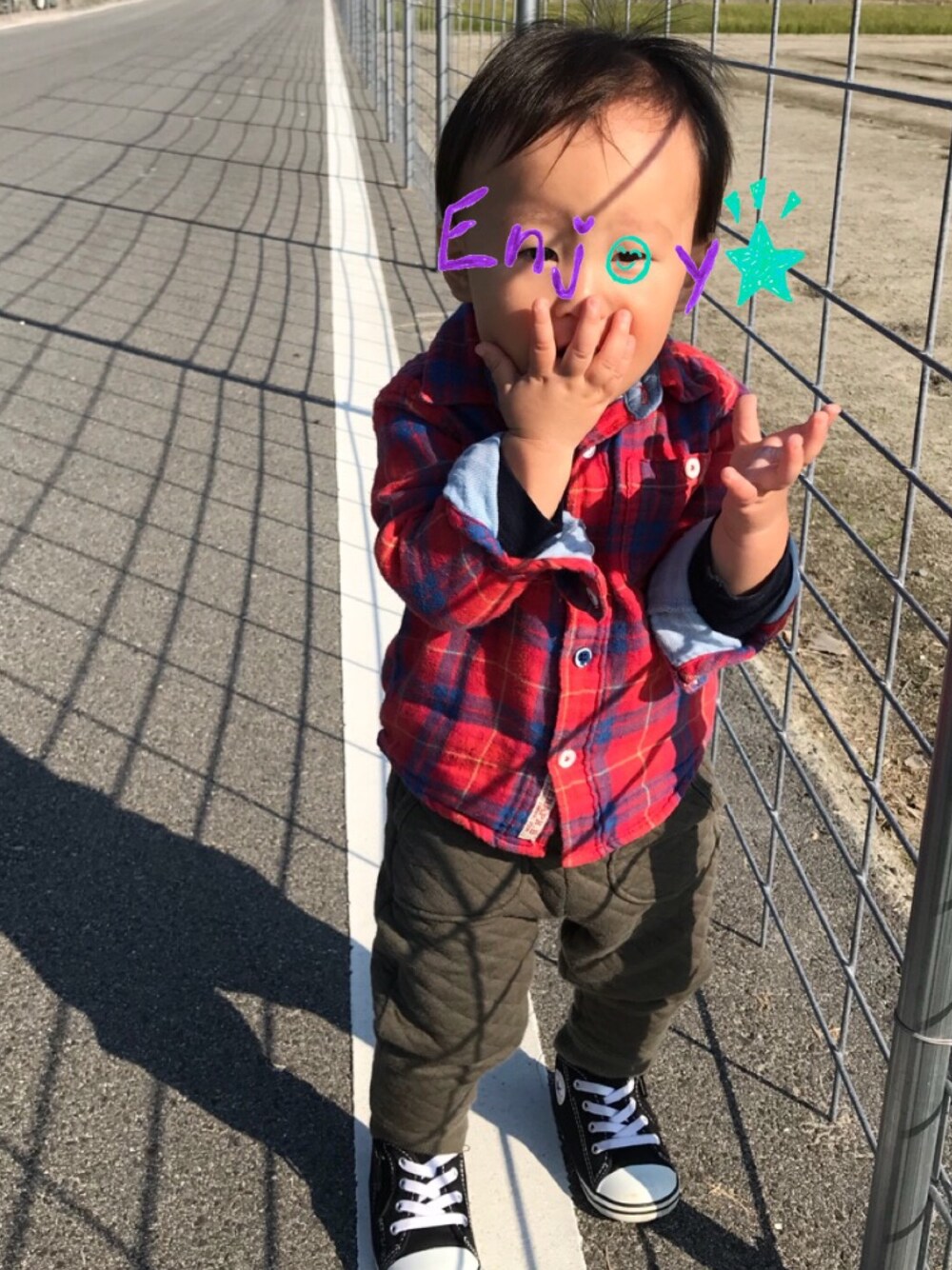 お散歩中^ - ^ 行ったり来たりでなかなか進まず。 結局目的地までたどり着けず、力尽きて帰宅… 帰りはひたすら抱っことせがまれ挙句に途中で寝てしまい、重たかった!! ママのダイエット散歩でした☆