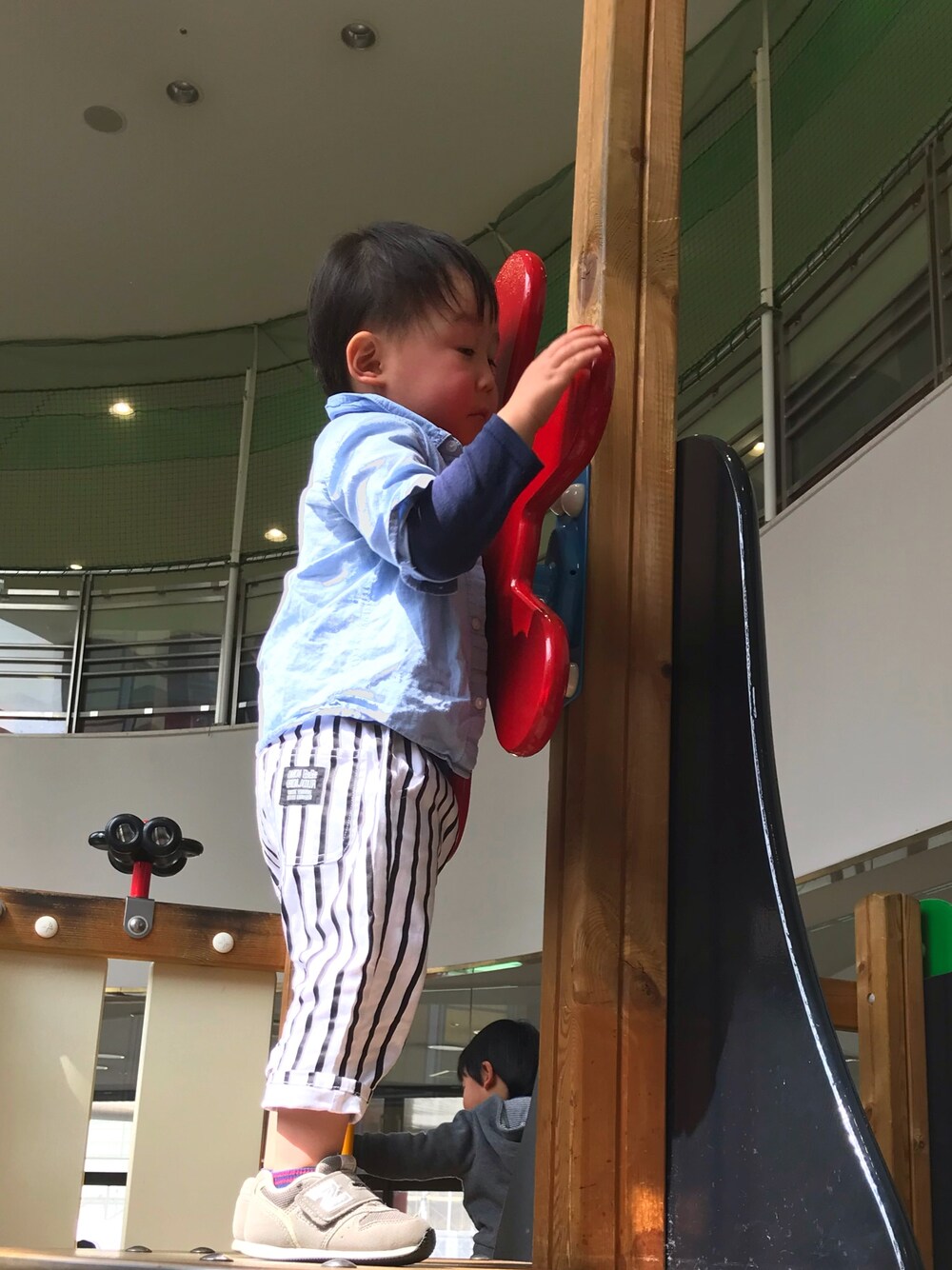 ブルー系のシャツ/ブラウス、ブルー系のその他パンツを着用したキッズの春コーディネートの1枚目の写真