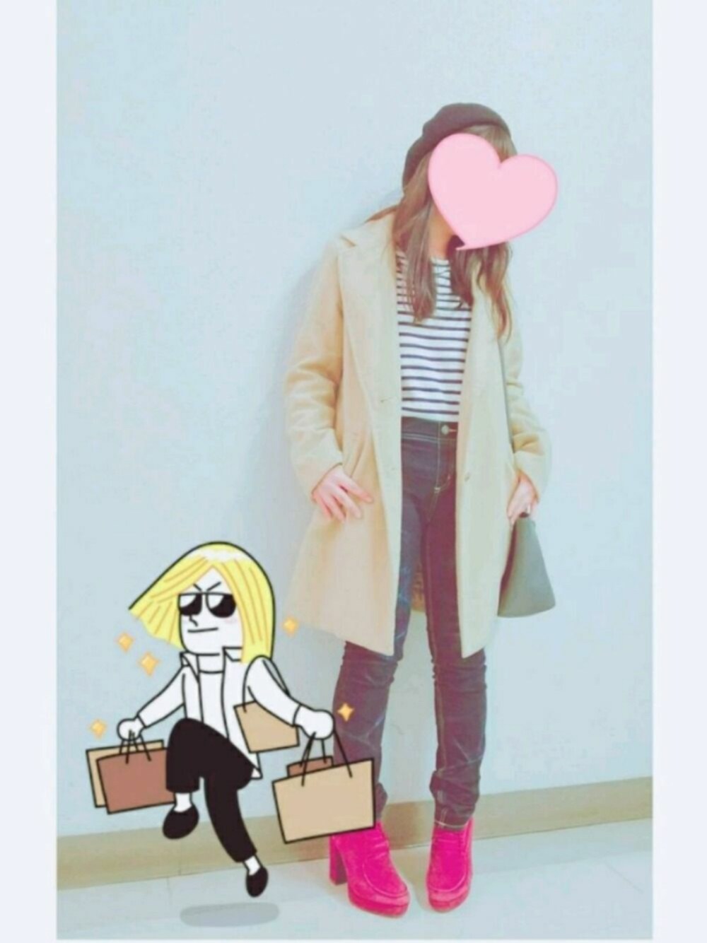 今日はボートネックを取り入れたファッションにしてみました! 黒のベレー帽、ボートネックのボーダーTシャツにスキニージーンズ、ベージュのコート、差し色のワインレッドのショートブーツとグレーのバックを合わせました! 好評だったら上着脱いだバージョンもアップします!
