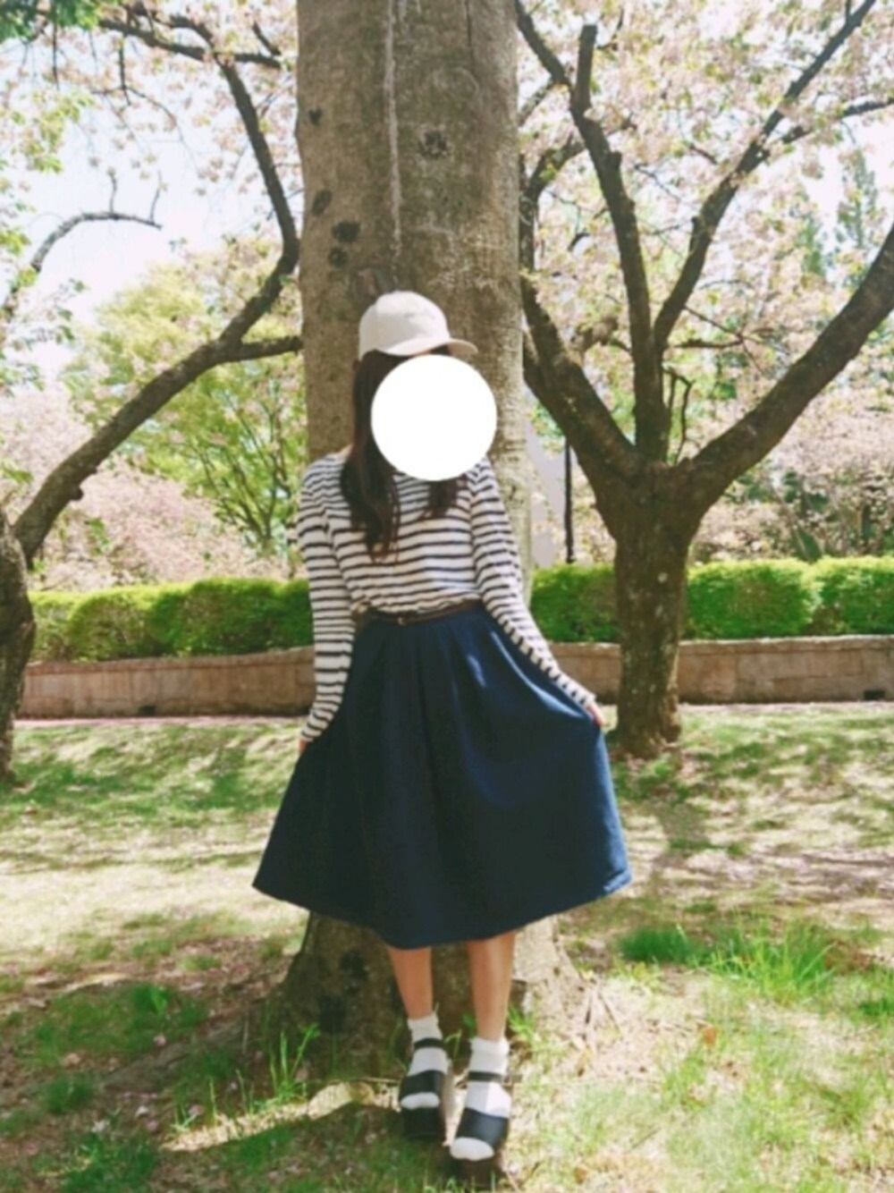 うらぴーのTシャツ/カットソー「ボーダーボートネックT(長袖)」を使ったコーディネート