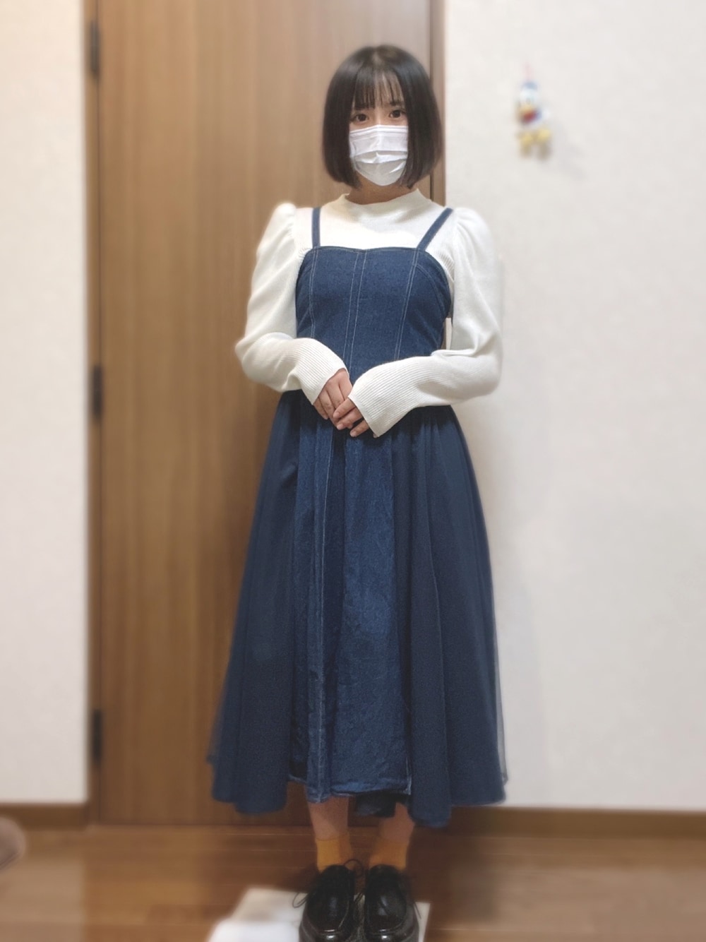 デニム素材ですがカジュアル過ぎずガーリー要素もあって可愛く着こなせます〇 友達にも褒めてもらって嬉しかったぁ😚