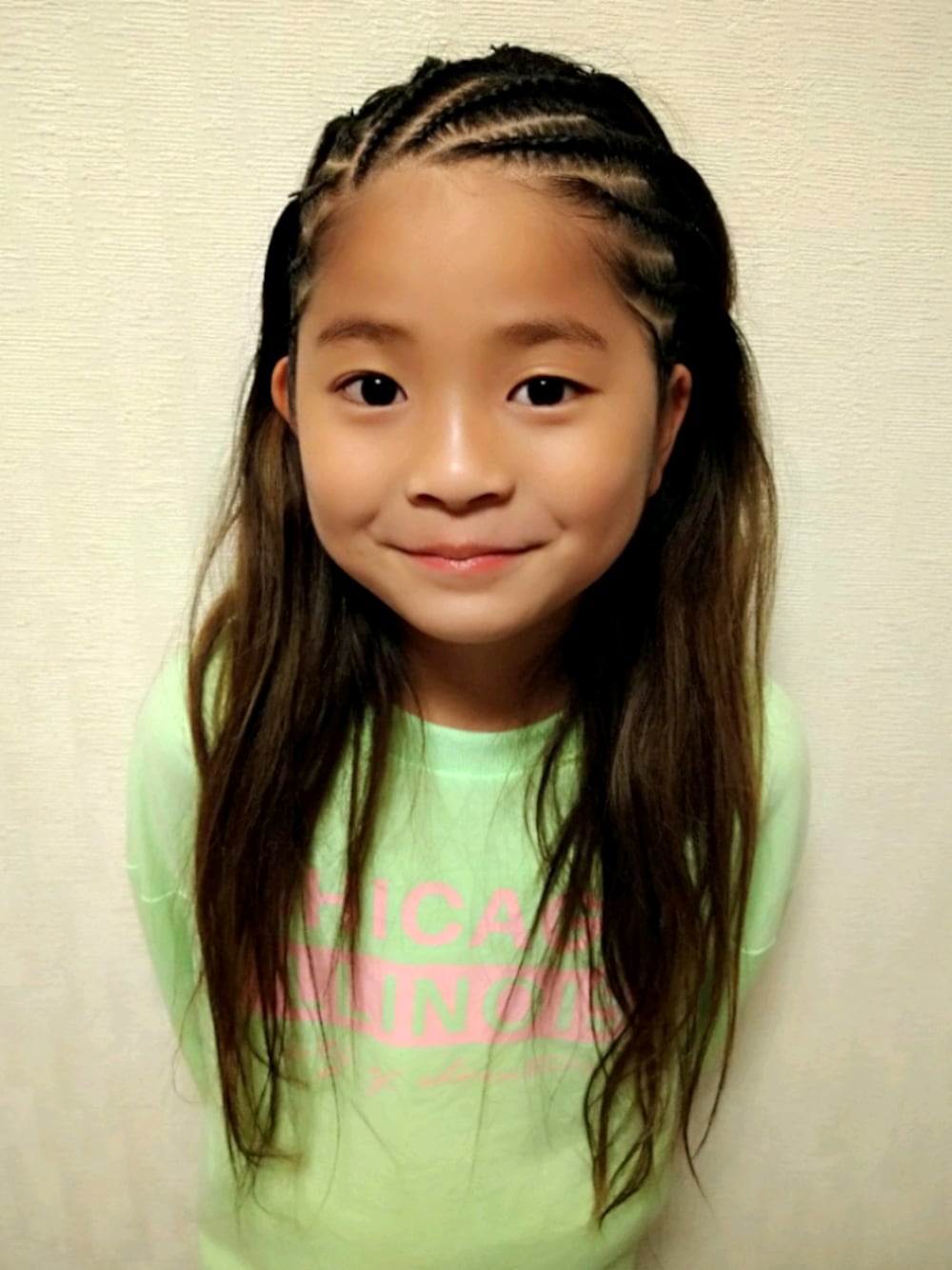 見て頂き有難うございます🙏 ダンスの発表会の為にコーンロウしましたよぉ😘 お姉さんになるにつれ、どんどんコーンロウのデザインがシンプルになっていきますね😉 去年は発表会が無く、一昨年は☆型コーンロウ、その前の年はハート、年々うららたんの好みがお姉さんになっていく事に成長を感じ、ダンスのキレとなめらかさが増して9歳にして色気が増していきます💕 これから先も楽しみです🥰
