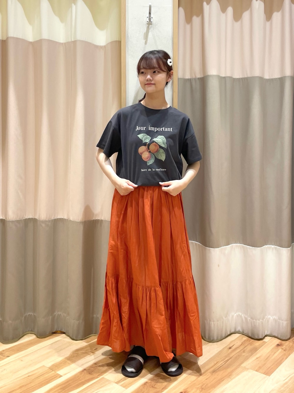 くすみカラーがトレンドっぽい、オレンジのスカートです🍊🧡 抑えめな色なので、幅広い世代に人気のアイテムです! 手持ちのTシャツと自由に合わせて着るだけでおしゃれに見えるアイテムです♩ _____ STAFF OF THE YEARの2次審査投票受付中!🗳️ 特設サイトから投票とコーディネートのいいねをお願いします♡ _____ 店内は最大60%オフ! セールアイテムは全品半額以下です◎