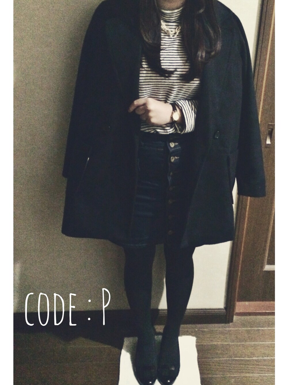 ボーダー大好き 昼まではトレンチ着てたけど寒すぎて