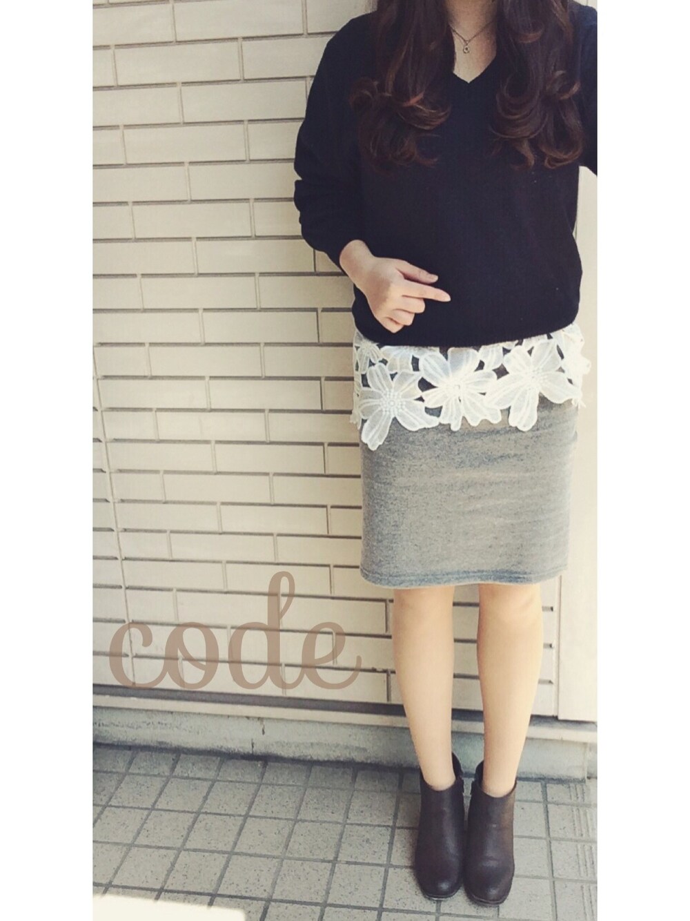 おっきなお花の裾は、インナーについてて 着回し力高め!お気に入り : > グレー ネイビー ホワイト の 好きな配色