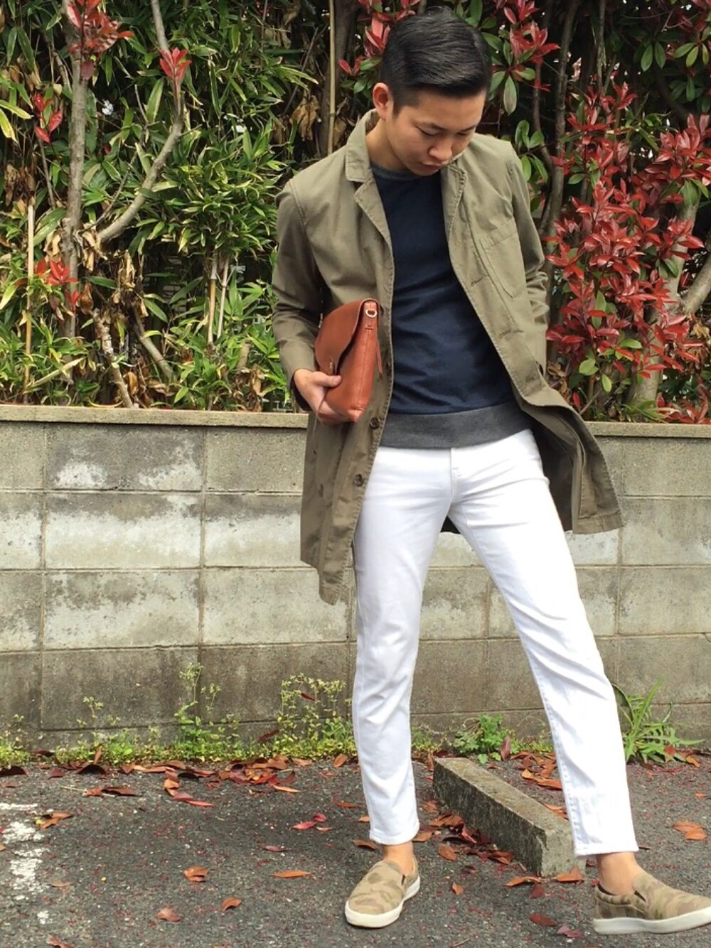 sotaのステンカラーコート「製品染めバックサテンショップコート」を使ったコーディネート