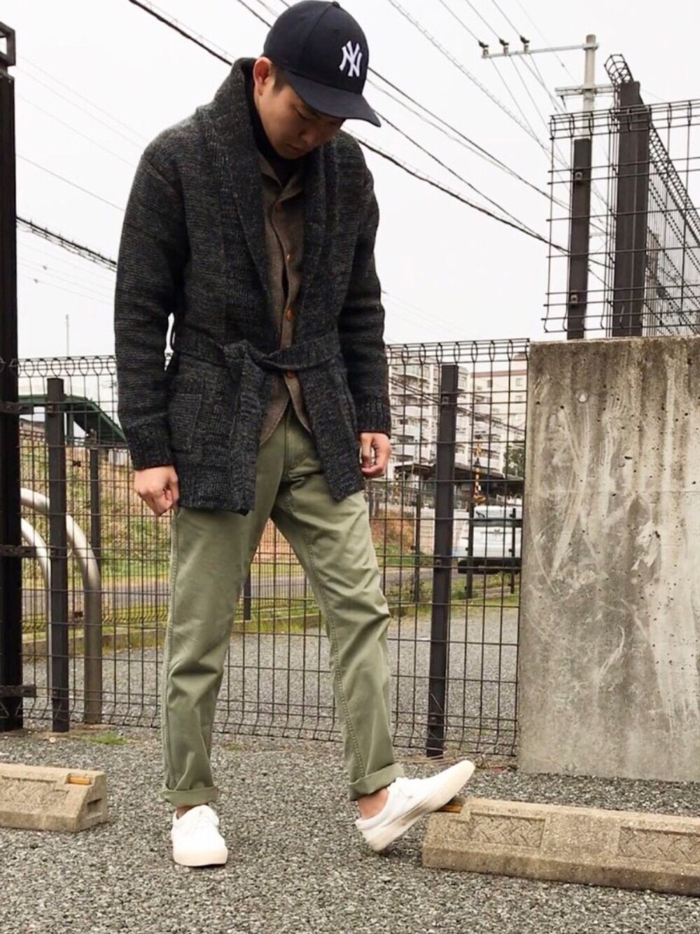 着用コーデ:2件sotaのカーディガン/ボレロ「5G シェットランドインディゴミックスローブニット#」を使ったコーディネート