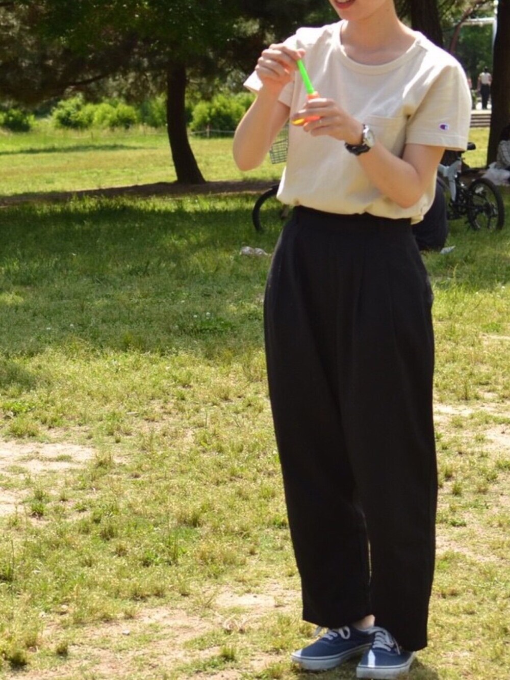 悠里のスラックス「ツイルタックワイドパンツ」を使ったコーディネート