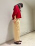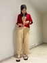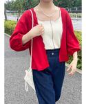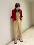 スカラップカーディガンは、前開きの部分がナミナミにデザインされていてとっても可愛いです✨ 赤い色は、シンプルコーデの差し色になります❤️