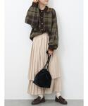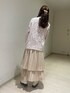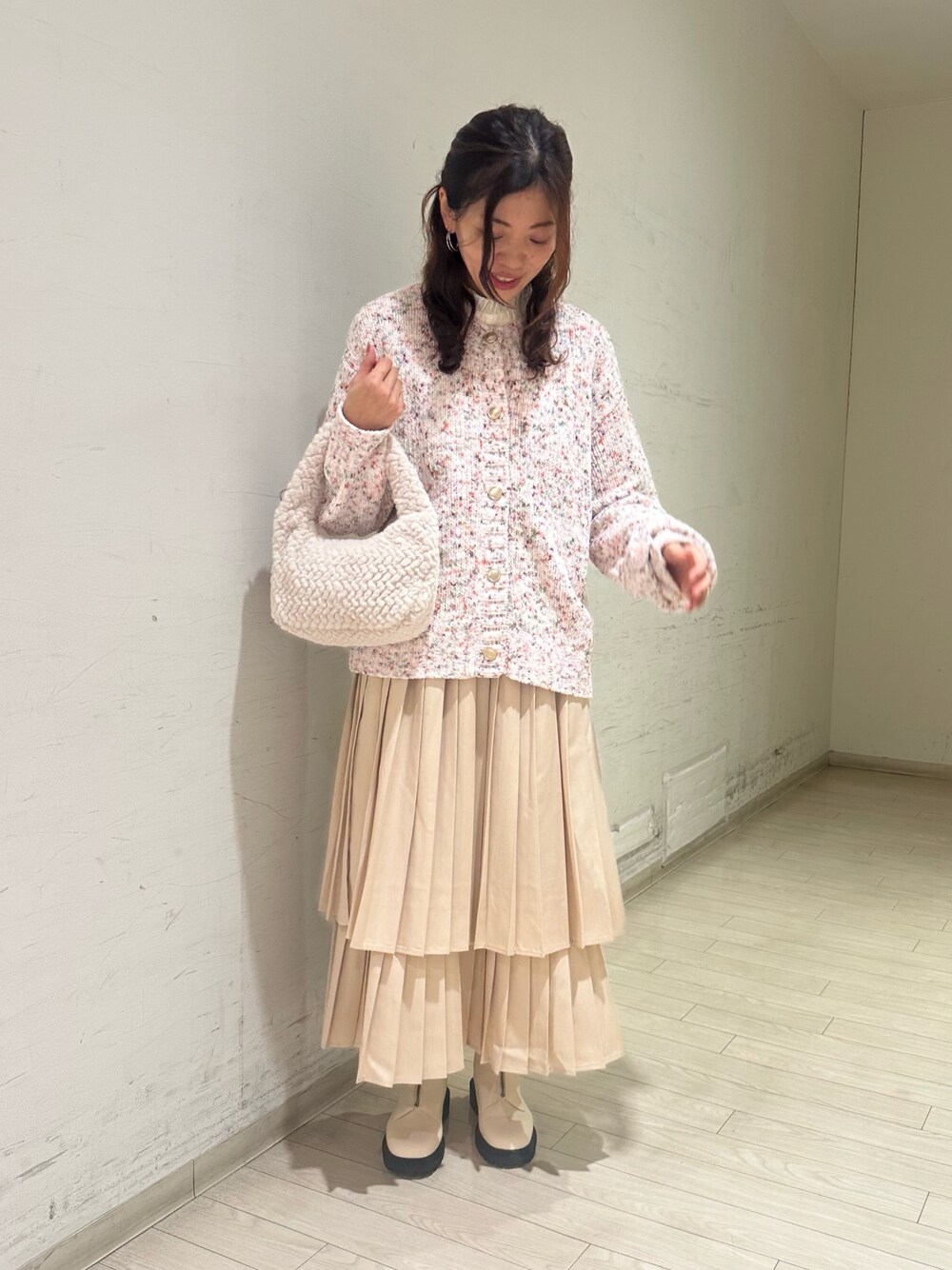 スカートは、プリーツがさらにティアードになっているのでパッと目を引くデザインです🎀 ホワイトトーンでまとめ、ガーリーにコーディネートを組んでみました🍀