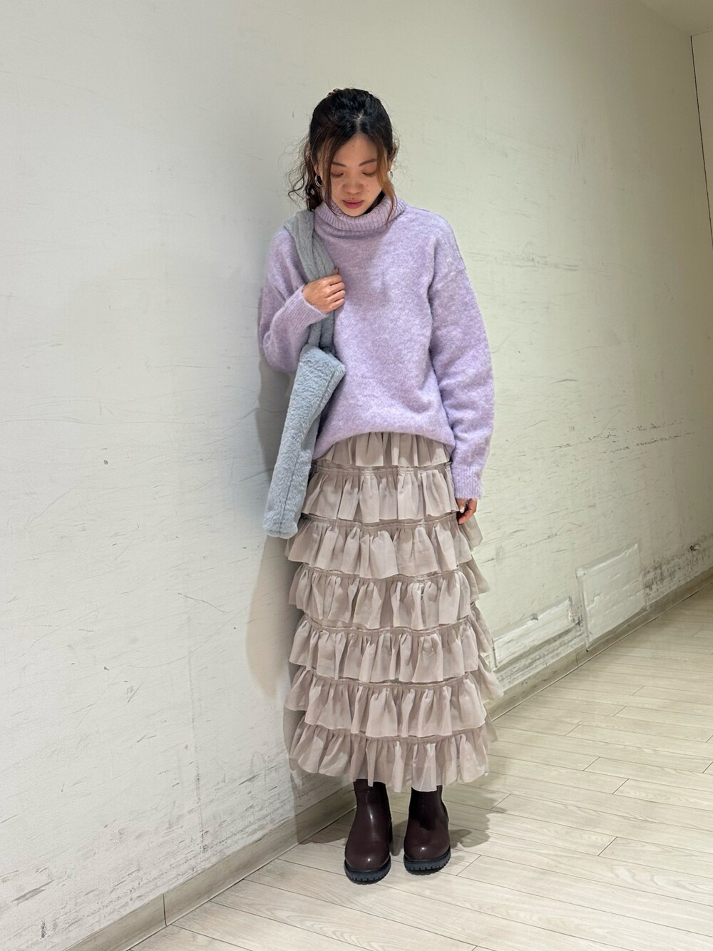 uri630のニット/セーター「オーバーシルエットハイネックニット」を使ったコーディネート