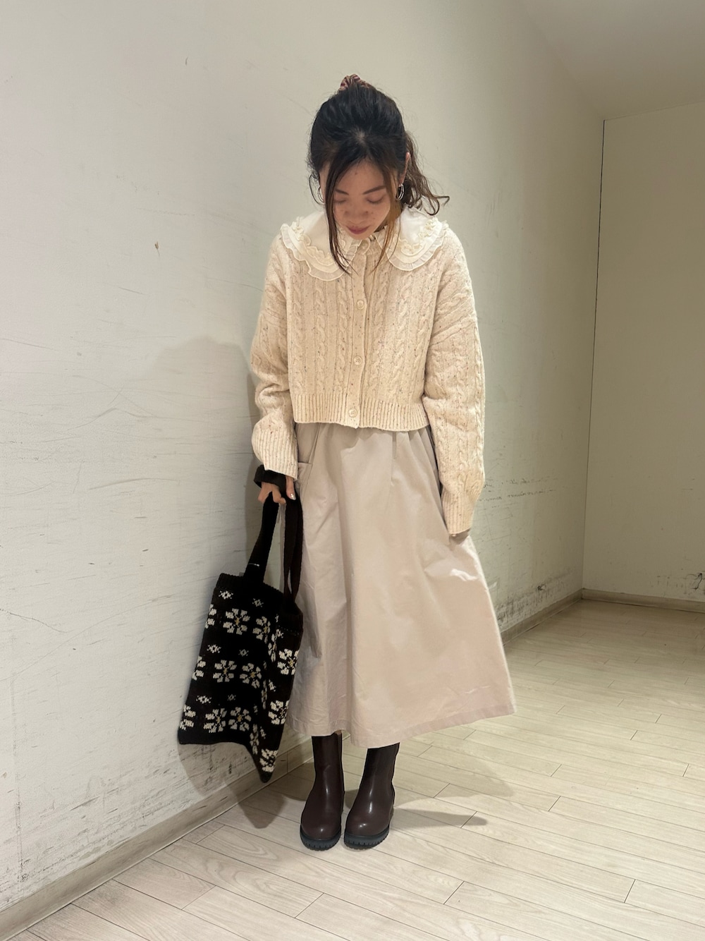カーディガンは、ショート丈なのでロングスカートやハイウエストのボトムスと相性抜群です🍀
