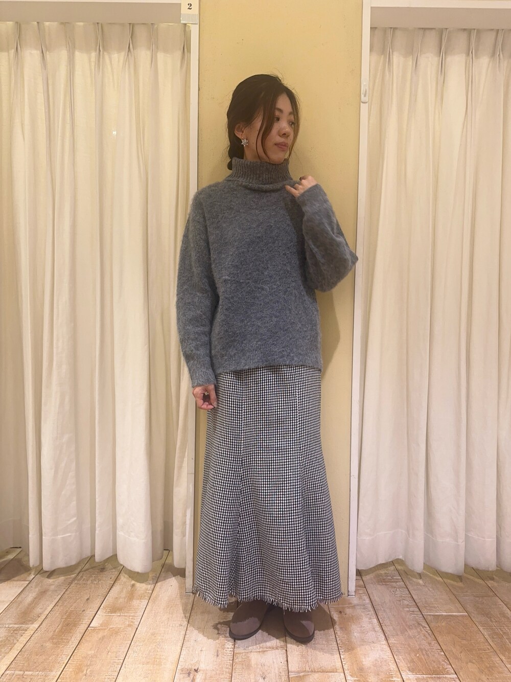 マーメイドスカートは、ヒップ周りにゆとりを持たせてあるので体のラインを拾いにくく履きやすいです🎀