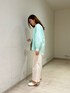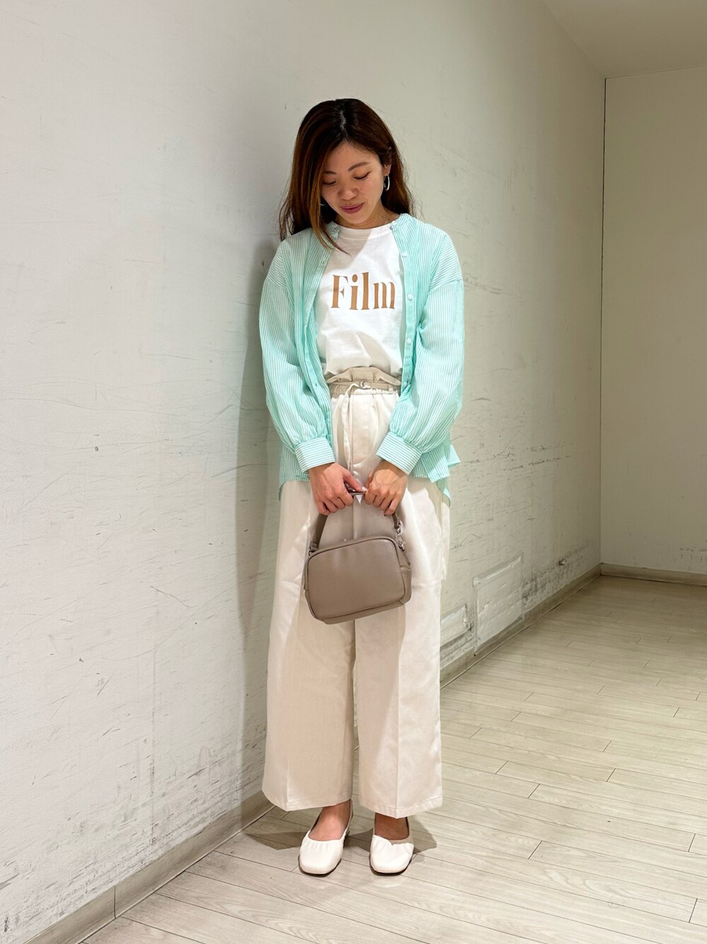 シアーストライプのシャツは蛍光っぽいミントのお色で、ワントーンコーデの差し色になります🍀