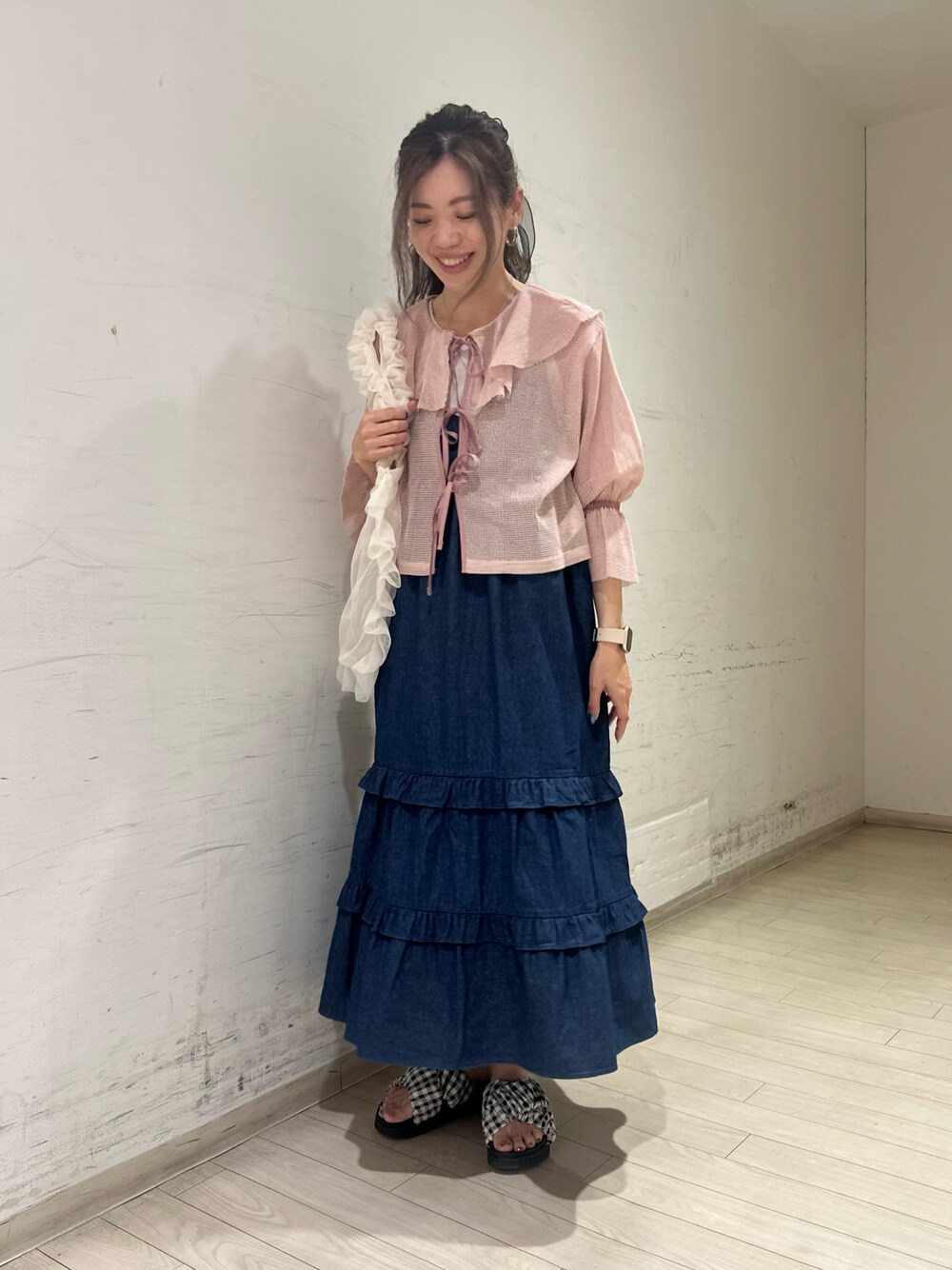 uri630のシャツ/ブラウス「メッシュラッフルブラウス」を使ったコーディネート