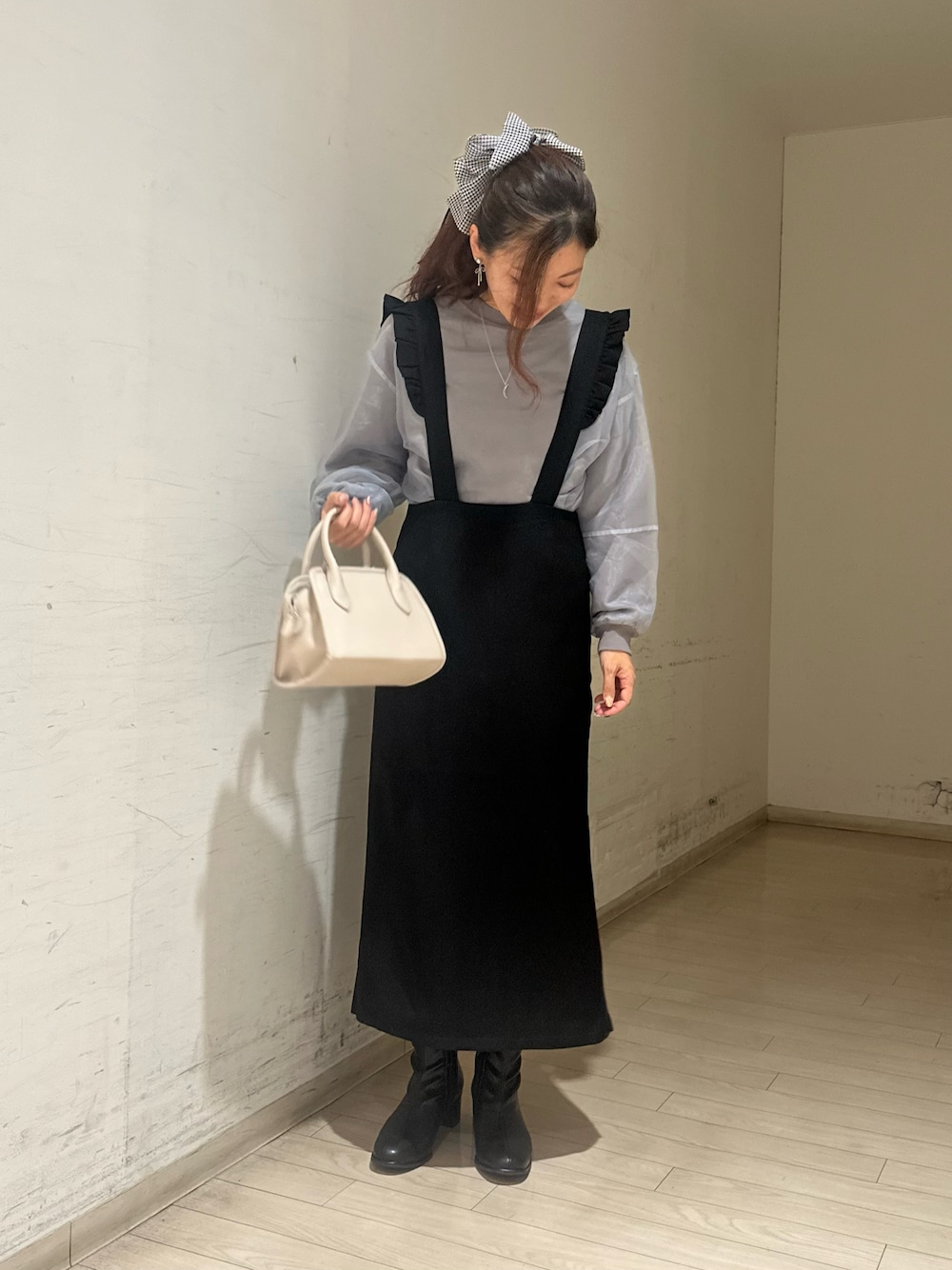 サス付きナロースカートは、スッキリとしたシルエットでボリュームのあるのトップスとの相性も抜群です🍀 マエストロ監修のこちらのショートブーツは、本当に軽くて歩きやすく、足が綺麗に見えます!履いたスタッフ全員感激しました! 普段24.5を履かれている方はLサイズがおすすめです✨