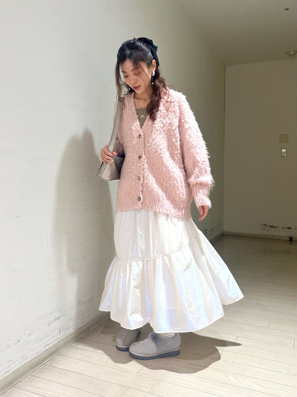 スカートはオーロラの光沢がとても綺麗で、冬のホリデーコーデにピッタリです🎄 軽やかにふんわりと広がります✨🔔