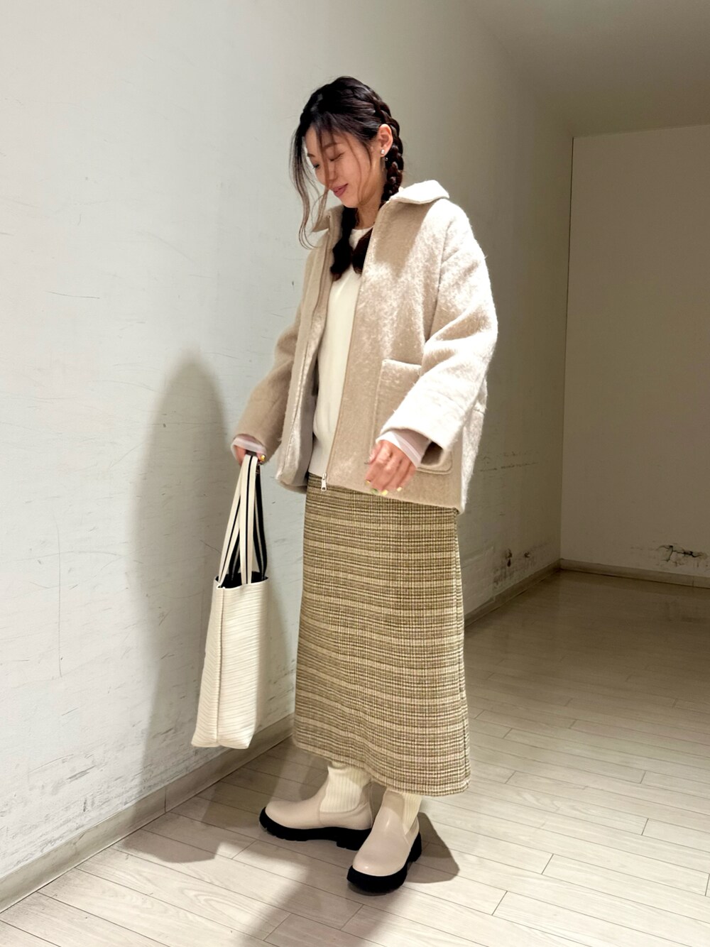スカートは裏地付きで冬でも暖かいです⛄️ ストンとしたシルエットで細見えします✨