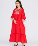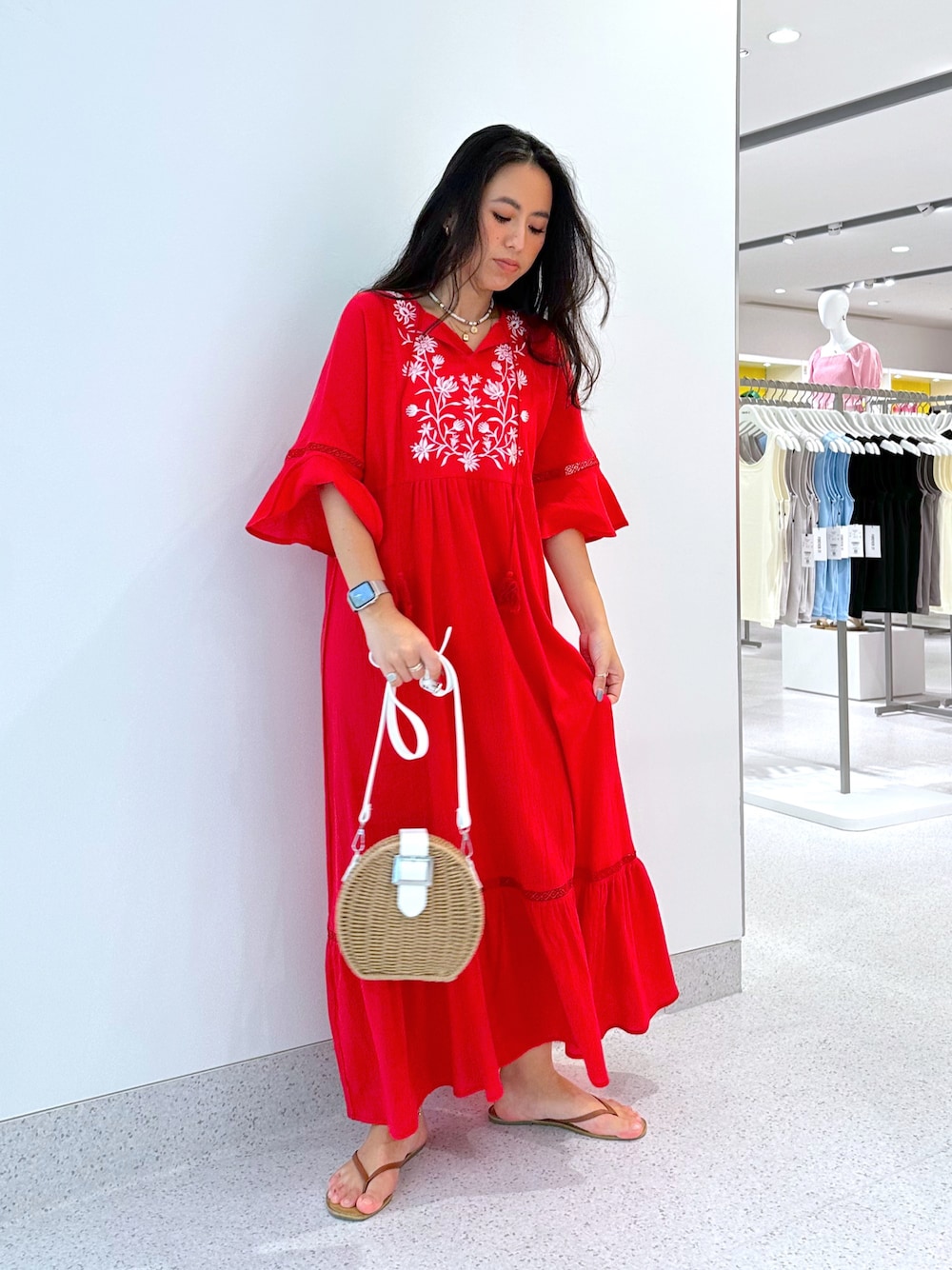 1枚でオシャレ見えワンピース♡ 1枚でオシャレ感が溢れ出るワンピース☺︎ さりげないデザインが派手過ぎないのもGood☆ カラーも綺麗なレッドなので写真映えや肌を綺麗に見せてくれます♡ 袖も少し長めなので日焼け対策も抜群です♪