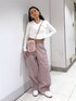 ⭐とってもオススメコーディネート  ̄ ̄ ̄ ̄ ̄ ̄ ̄ ̄ ̄ ̄ ̄ ̄ ̄ ̄ ̄ ̄ ̄ 【トップス】 Vネックなので、顔回りすっきり見え効果有り🙆🏻♀️ 襟もあるのもポイント❣️ 丈感もクロップド丈なので、ウエストも綺麗に見せてくれます🫶🏽 【ボトムス】 カラーがとっても可愛いお気に入りナイロンパンツ🥹 モノトーンが多いナイロンパンツですが、今回はなんとピンクがあるんです🫶🏽 ピンクの小物と合わせると、カジュアルスタイルでもカジュアルダウンしてくれます❣️ 横浜ジョイナス店では上下で大人気のコーディネートなんです✨
