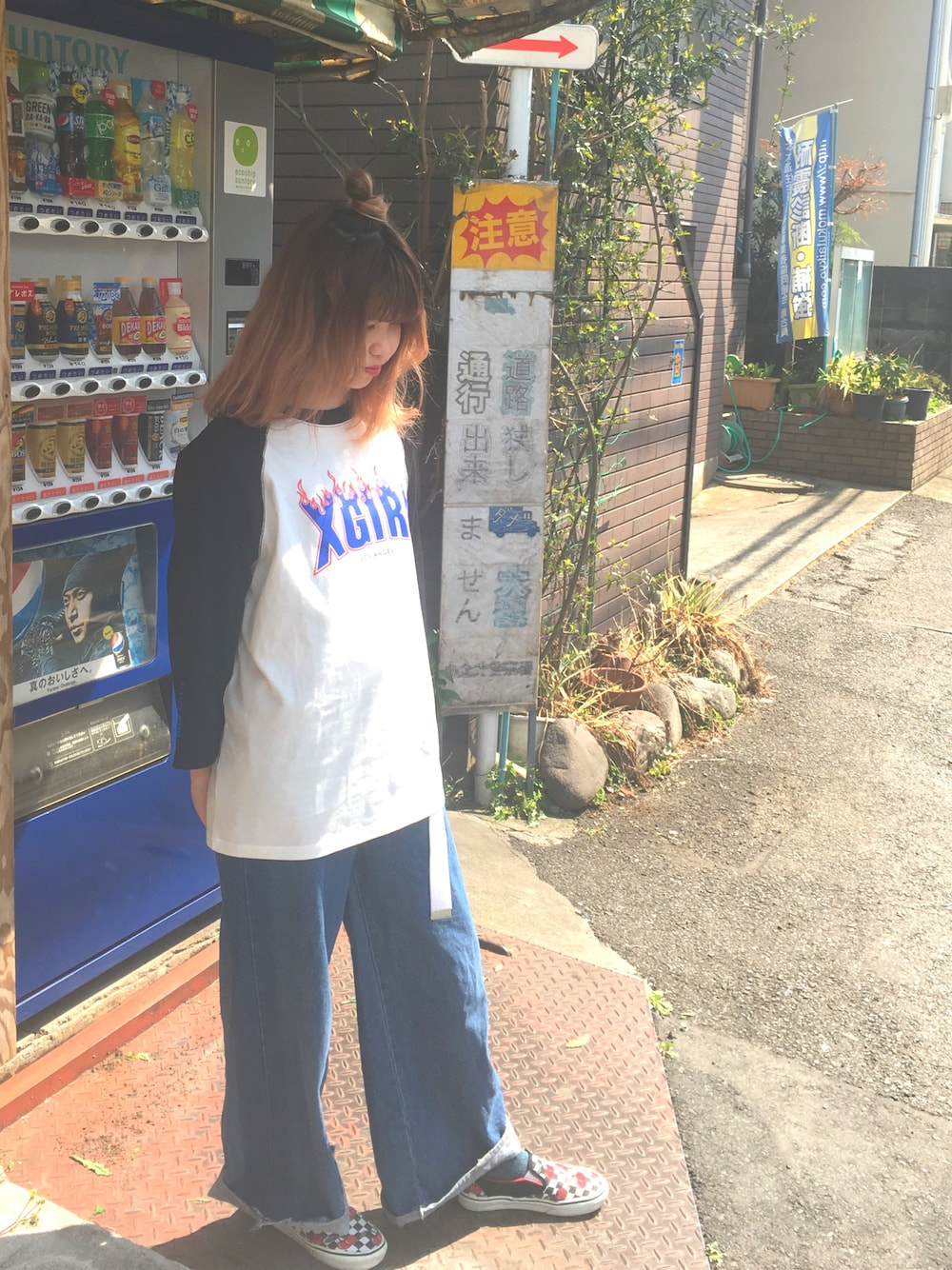 xgirlの新作Tシャツが主役〜 フレイム柄もラグランもすごくスキ 足元は、高円寺の古着屋で運命の出会いを果たしたvansのスリッポンで、チェリーチェッカーズってやつです🍒🍒🍒 今まで見たスニーカーの中で12を争う可愛さ… 所々に赤色があしらってあって、バックのロゴも赤になっててほんとに素敵な一足です!