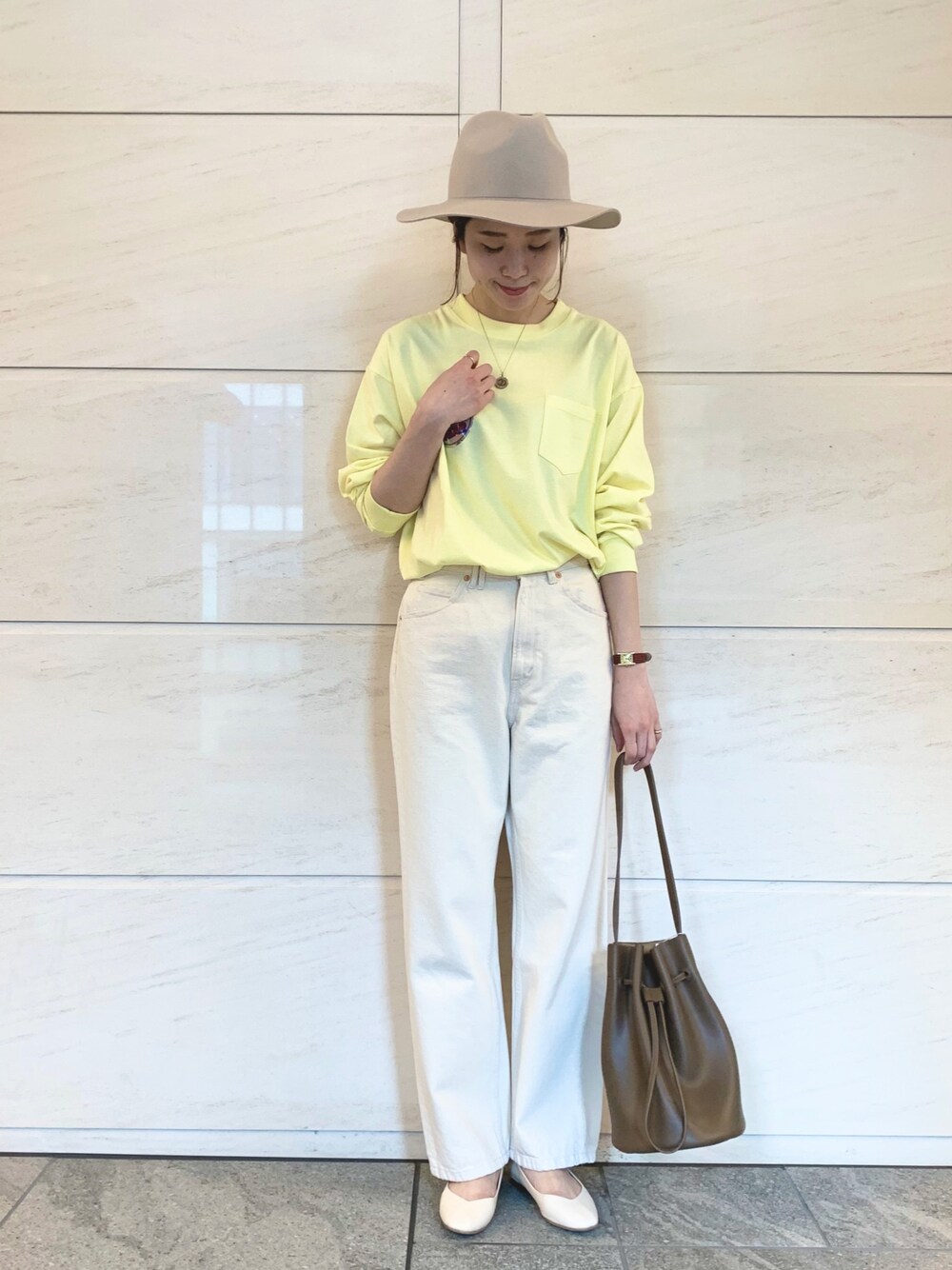 レモンイエローのトップスで気分も明るく!