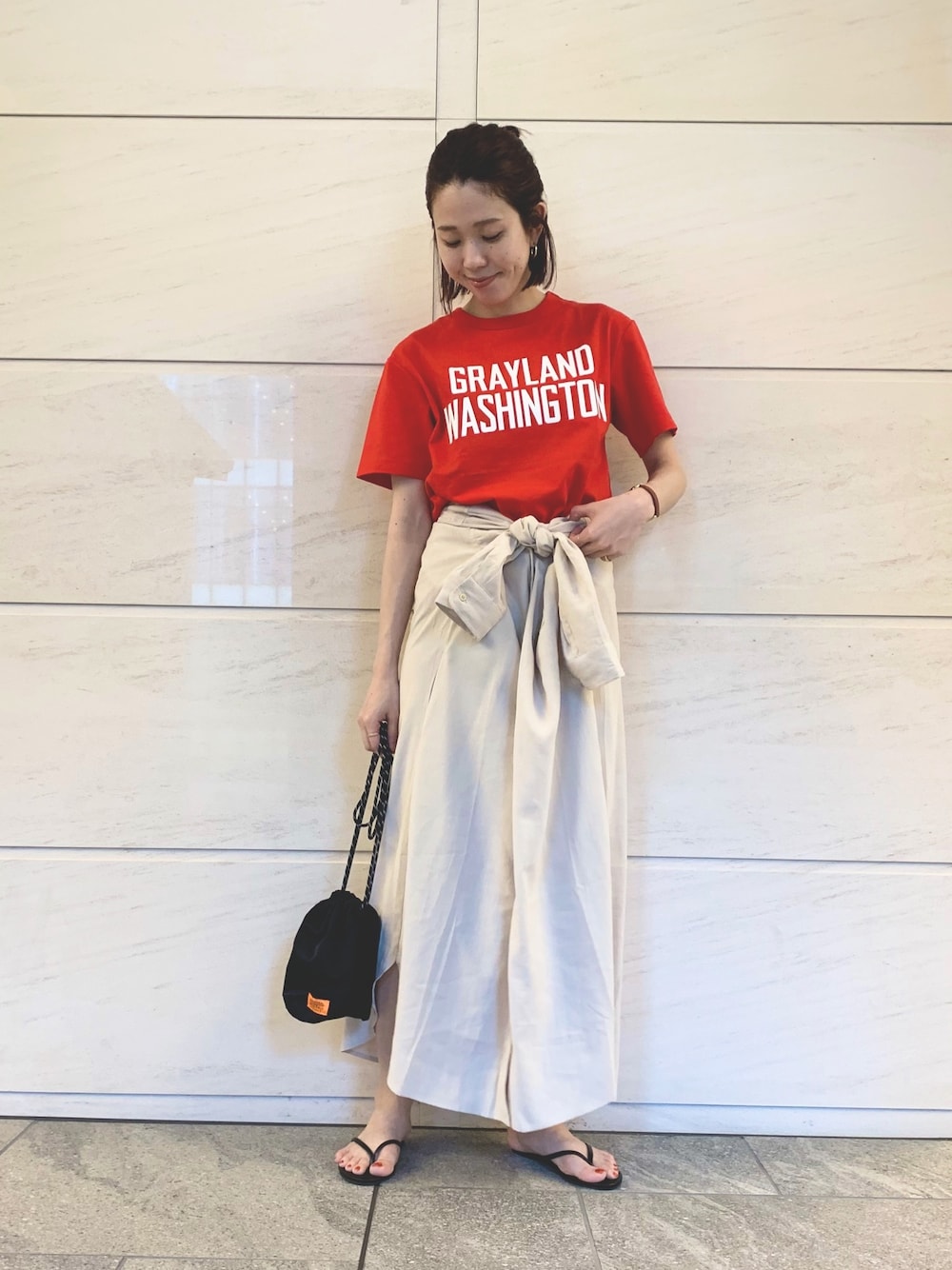 古着風の赤Tは ワンピースをアレンジしたスカート合わせで ゆるっとカジュアルに。