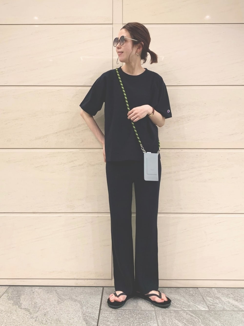 たまにはブラックのワントーンで。 カジュアルなチャンピオンTシャツを モードな雰囲気に◎